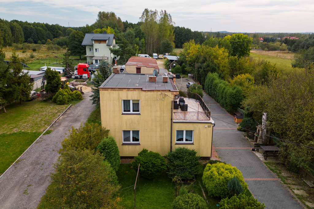 Dom znajduje się w malowniczej i spokojnej części Wojkowic Kościelnych przy ul. Karsów, co sprawia, że miejsce to jest idealne dla rodzin szukających ciszy, przestrzeni i prywatności, a jednocześnie mających łatwy dostęp do kluczowych punktów w okolicy.